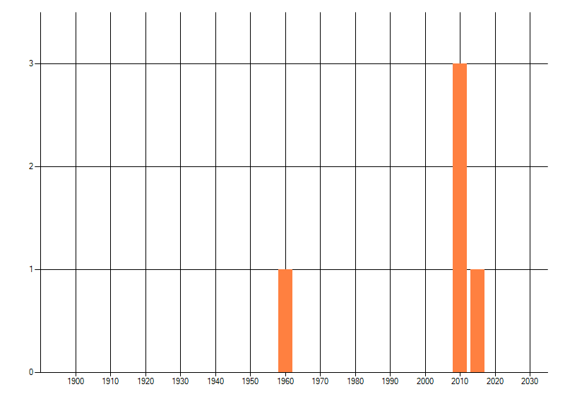 Het aantal atlasblokken (5x5 km) waarin de soort is gemeld binnen een periode van vijf jaar (vanaf 1980) of twintig jaar. Niet gecorrigeerd voor waarnemersinspanning en het aantal doorgegeven waarnemingen kan sterk variëren per periode, dus een trend in verspreiding kan hier niet direct uit worden afgelezen. Het opgegeven jaartal is het eerste jaar van de periode. Bron: gevalideerde waarnemingen uit de NDFF.