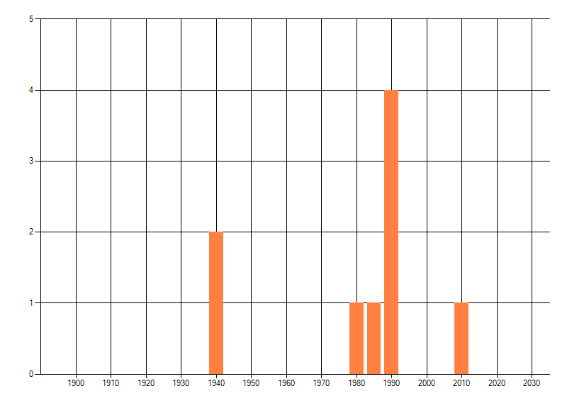 Het aantal atlasblokken (5x5 km) waarin de soort is gemeld binnen een periode van vijf jaar (vanaf 1980) of twintig jaar. Niet gecorrigeerd voor waarnemersinspanning en het aantal doorgegeven waarnemingen kan sterk variëren per periode, dus een trend in verspreiding kan hier niet direct uit worden afgelezen. Het opgegeven jaartal is het eerste jaar van de periode. Bron: gevalideerde waarnemingen uit de NDFF.