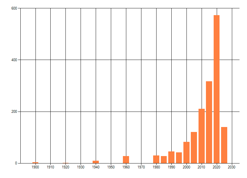 Het aantal atlasblokken (5x5 km) waarin de soort is gemeld binnen een periode van vijf jaar (vanaf 1980) of twintig jaar. Niet gecorrigeerd voor waarnemersinspanning en het aantal doorgegeven waarnemingen kan sterk variëren per periode, dus een trend in verspreiding kan hier niet direct uit worden afgelezen. Het opgegeven jaartal is het eerste jaar van de periode. Bron: gevalideerde waarnemingen uit de NDFF.