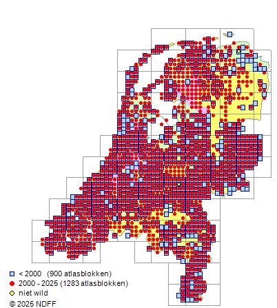 Bron: FLORON - Gemodelleerd op basis van waarnemingen uit de NDFF voor de periode 2000-2021.