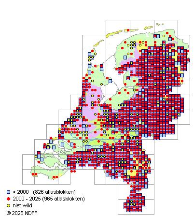 CC BY-NC-SA 3.0 NLVerspreidingNederlandVrij algemeen in Zuid-Limburg, in het oosten en midden van het land en in het aangrenzende rivierengebied en vrij zeldzaam in de Hollandse binnenduinrand. Elders zeer zeldzaam.