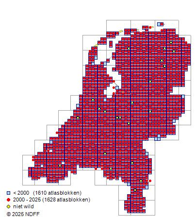 Bron: FLORON - Gemodelleerd op basis van waarnemingen uit de NDFF voor de periode 2000-2021.