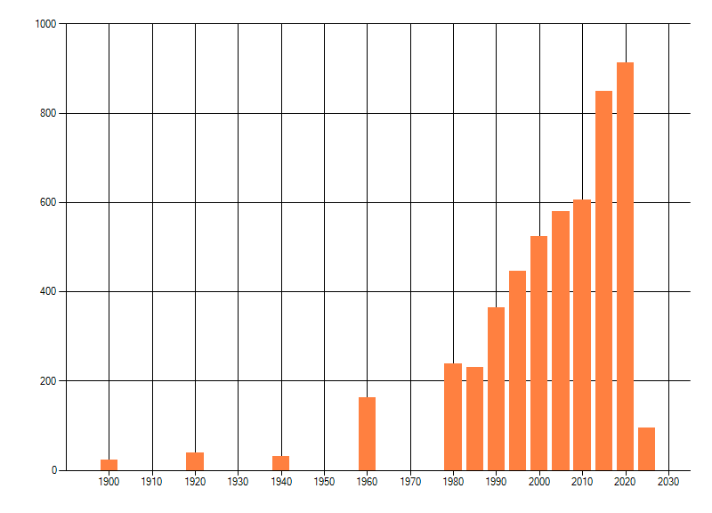 Het aantal atlasblokken (5x5 km) waarin de soort is gemeld binnen een periode van vijf jaar (vanaf 1980) of twintig jaar. Niet gecorrigeerd voor waarnemersinspanning en het aantal doorgegeven waarnemingen kan sterk variëren per periode, dus een trend in verspreiding kan hier niet direct uit worden afgelezen. Het opgegeven jaartal is het eerste jaar van de periode. Bron: gevalideerde waarnemingen uit de NDFF.