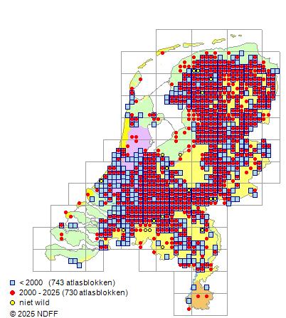 Bron: FLORON - Gemodelleerd op basis van waarnemingen uit de NDFF voor de periode 2000-2021.