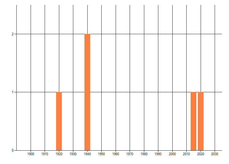 Het aantal atlasblokken (5x5 km) waarin de soort is gemeld binnen een periode van vijf jaar (vanaf 1980) of twintig jaar. Niet gecorrigeerd voor waarnemersinspanning en het aantal doorgegeven waarnemingen kan sterk variëren per periode, dus een trend in verspreiding kan hier niet direct uit worden afgelezen. Het opgegeven jaartal is het eerste jaar van de periode. Bron: gevalideerde waarnemingen uit de NDFF.