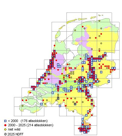 CC BY-NC-SA 3.0 NLVerspreidingNederlandZeldzaam in Zuid-Limburg, in de rivierdalen en in de duinen tussen Bergen en Goeree. Elders zeer zeldzaam.
