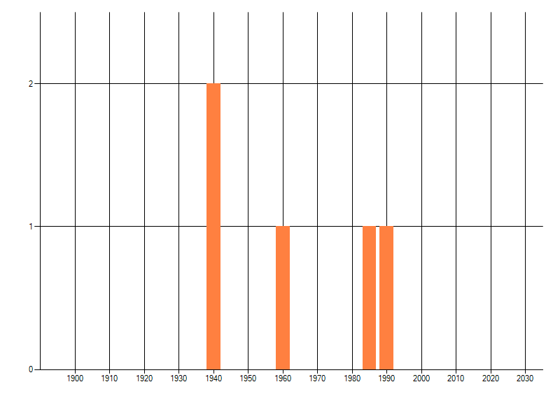 Het aantal atlasblokken (5x5 km) waarin de soort is gemeld binnen een periode van vijf jaar (vanaf 1980) of twintig jaar. Niet gecorrigeerd voor waarnemersinspanning en het aantal doorgegeven waarnemingen kan sterk variëren per periode, dus een trend in verspreiding kan hier niet direct uit worden afgelezen. Het opgegeven jaartal is het eerste jaar van de periode. Bron: gevalideerde waarnemingen uit de NDFF.