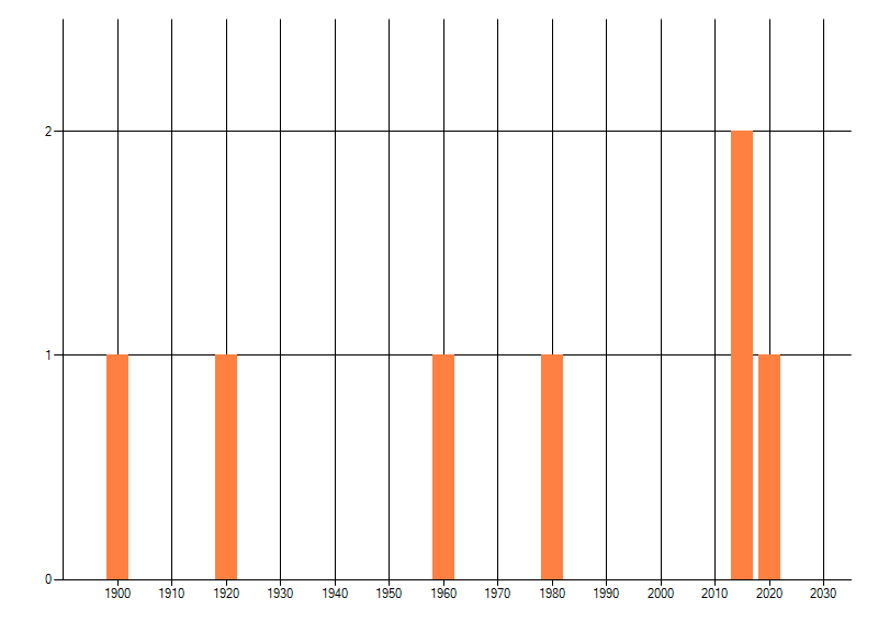 Het aantal atlasblokken (5x5 km) waarin de soort is gemeld binnen een periode van vijf jaar (vanaf 1980) of twintig jaar. Niet gecorrigeerd voor waarnemersinspanning en het aantal doorgegeven waarnemingen kan sterk variëren per periode, dus een trend in verspreiding kan hier niet direct uit worden afgelezen. Het opgegeven jaartal is het eerste jaar van de periode. Bron: gevalideerde waarnemingen uit de NDFF.