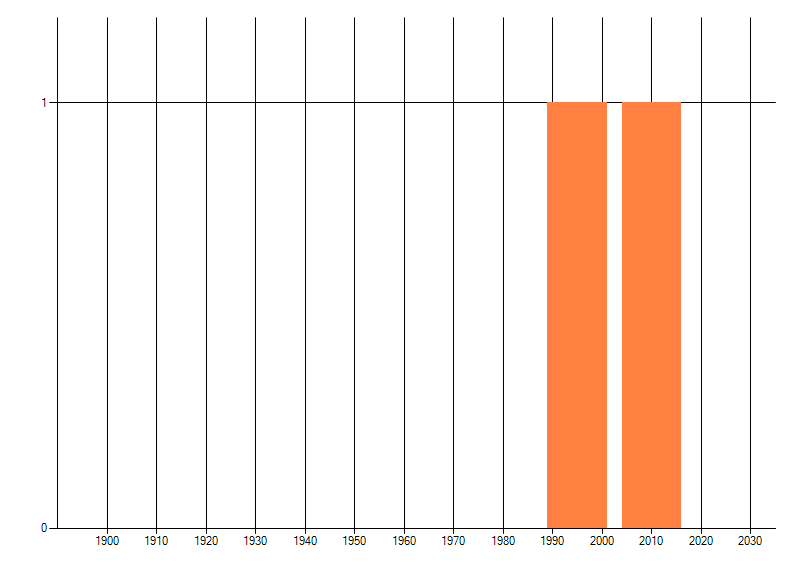 Het aantal atlasblokken (5x5 km) waarin de soort is gemeld binnen een periode van vijf jaar (vanaf 1980) of twintig jaar. Niet gecorrigeerd voor waarnemersinspanning en het aantal doorgegeven waarnemingen kan sterk variëren per periode, dus een trend in verspreiding kan hier niet direct uit worden afgelezen. Het opgegeven jaartal is het eerste jaar van de periode. Bron: gevalideerde waarnemingen uit de NDFF.