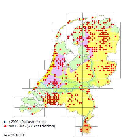 Bron: FLORON - Gemodelleerd op basis van waarnemingen uit de NDFF voor de periode 2000-2021.
