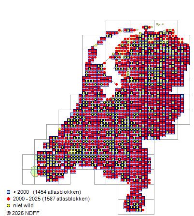 Bron: FLORON - Gemodelleerd op basis van waarnemingen uit de NDFF voor de periode 2000-2021.