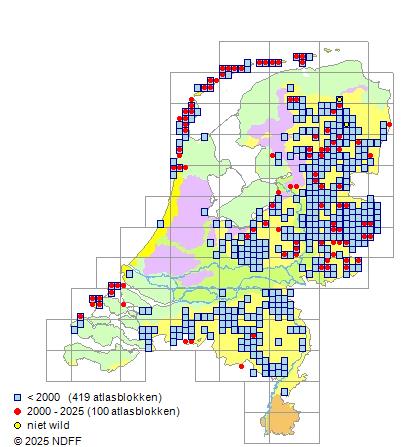 Bron: FLORON - Gemodelleerd op basis van waarnemingen uit de NDFF voor de periode 2000-2021.
