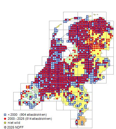 CC BY-NC-SA 3.0 NLVerspreidingNederlandVrij algemeen in laagveengebieden, in het noordelijk zeekleigebied, in het rivierengebied en in de Hollandse duinen. Elders zeldzaam tot zeer zeldzaam.