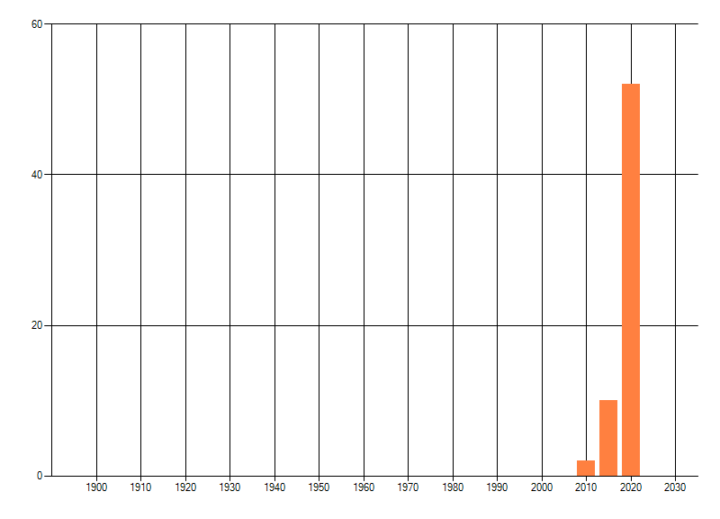 Het aantal atlasblokken (5x5 km) waarin de soort is gemeld binnen een periode van vijf jaar (vanaf 1980) of twintig jaar. Niet gecorrigeerd voor waarnemersinspanning en het aantal doorgegeven waarnemingen kan sterk variëren per periode, dus een trend in verspreiding kan hier niet direct uit worden afgelezen. Het opgegeven jaartal is het eerste jaar van de periode. Bron: gevalideerde waarnemingen uit de NDFF.