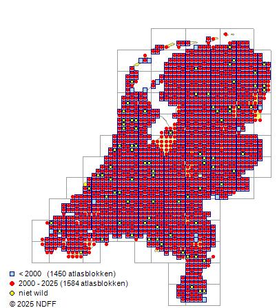 Bron: FLORON - Gemodelleerd op basis van waarnemingen uit de NDFF voor de periode 2000-2021.