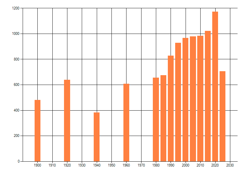 Het aantal atlasblokken (5x5 km) waarin de soort is gemeld binnen een periode van vijf jaar (vanaf 1980) of twintig jaar. Niet gecorrigeerd voor waarnemersinspanning en het aantal doorgegeven waarnemingen kan sterk variƫren per periode, dus een trend in verspreiding kan hier niet direct uit worden afgelezen. Het opgegeven jaartal is het eerste jaar van de periode. Bron: gevalideerde waarnemingen uit de NDFF.