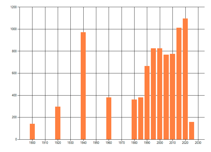Het aantal atlasblokken (5x5 km) waarin de soort is gemeld binnen een periode van vijf jaar (vanaf 1980) of twintig jaar. Niet gecorrigeerd voor waarnemersinspanning en het aantal doorgegeven waarnemingen kan sterk variëren per periode, dus een trend in verspreiding kan hier niet direct uit worden afgelezen. Het opgegeven jaartal is het eerste jaar van de periode. Bron: gevalideerde waarnemingen uit de NDFF.