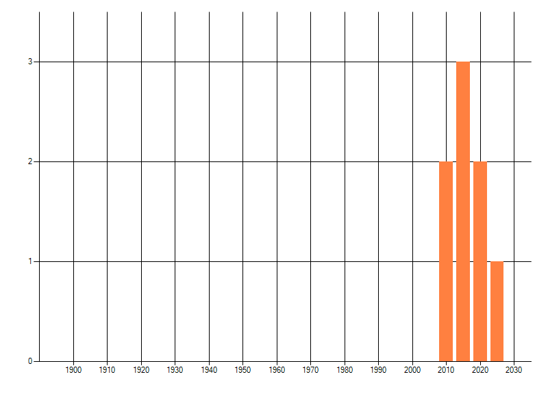 Het aantal atlasblokken (5x5 km) waarin de soort is gemeld binnen een periode van vijf jaar (vanaf 1980) of twintig jaar. Niet gecorrigeerd voor waarnemersinspanning en het aantal doorgegeven waarnemingen kan sterk variëren per periode, dus een trend in verspreiding kan hier niet direct uit worden afgelezen. Het opgegeven jaartal is het eerste jaar van de periode. Bron: gevalideerde waarnemingen uit de NDFF.