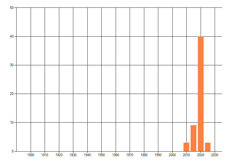 Het aantal atlasblokken (5x5 km) waarin de soort is gemeld binnen een periode van vijf jaar (vanaf 1980) of twintig jaar. Niet gecorrigeerd voor waarnemersinspanning en het aantal doorgegeven waarnemingen kan sterk variëren per periode, dus een trend in verspreiding kan hier niet direct uit worden afgelezen. Het opgegeven jaartal is het eerste jaar van de periode. Bron: gevalideerde waarnemingen uit de NDFF.