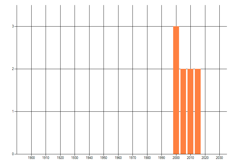 Het aantal atlasblokken (5x5 km) waarin de soort is gemeld binnen een periode van vijf jaar (vanaf 1980) of twintig jaar. Niet gecorrigeerd voor waarnemersinspanning en het aantal doorgegeven waarnemingen kan sterk variëren per periode, dus een trend in verspreiding kan hier niet direct uit worden afgelezen. Het opgegeven jaartal is het eerste jaar van de periode. Bron: gevalideerde waarnemingen uit de NDFF.