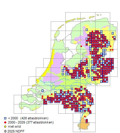 Bron: FLORON - Gemodelleerd op basis van waarnemingen uit de NDFF voor de periode 2000-2021.