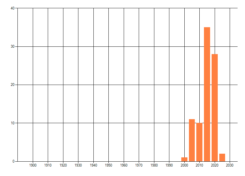 Het aantal atlasblokken (5x5 km) waarin de soort is gemeld binnen een periode van vijf jaar (vanaf 1980) of twintig jaar. Niet gecorrigeerd voor waarnemersinspanning en het aantal doorgegeven waarnemingen kan sterk variëren per periode, dus een trend in verspreiding kan hier niet direct uit worden afgelezen. Het opgegeven jaartal is het eerste jaar van de periode. Bron: gevalideerde waarnemingen uit de NDFF.