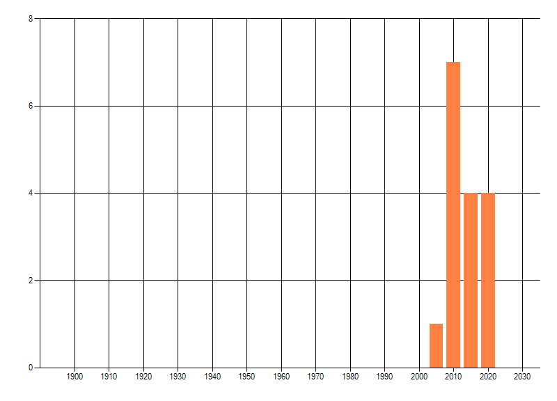 Het aantal atlasblokken (5x5 km) waarin de soort is gemeld binnen een periode van vijf jaar (vanaf 1980) of twintig jaar. Niet gecorrigeerd voor waarnemersinspanning en het aantal doorgegeven waarnemingen kan sterk variëren per periode, dus een trend in verspreiding kan hier niet direct uit worden afgelezen. Het opgegeven jaartal is het eerste jaar van de periode. Bron: gevalideerde waarnemingen uit de NDFF.