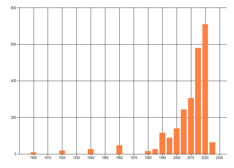 dus een trend in verspreiding kan hier niet direct uit worden afgelezen. Het opgegeven jaartal is het eerste jaar van de