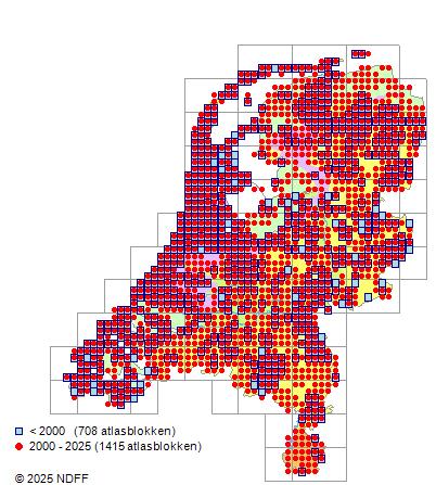 Bron: FLORON - Gemodelleerd op basis van waarnemingen uit de NDFF voor de periode 2000-2021.