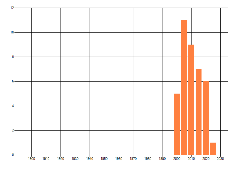 Het aantal atlasblokken (5x5 km) waarin de soort is gemeld binnen een periode van vijf jaar (vanaf 1980) of twintig jaar. Niet gecorrigeerd voor waarnemersinspanning en het aantal doorgegeven waarnemingen kan sterk variëren per periode, dus een trend in verspreiding kan hier niet direct uit worden afgelezen. Het opgegeven jaartal is het eerste jaar van de periode. Bron: gevalideerde waarnemingen uit de NDFF.