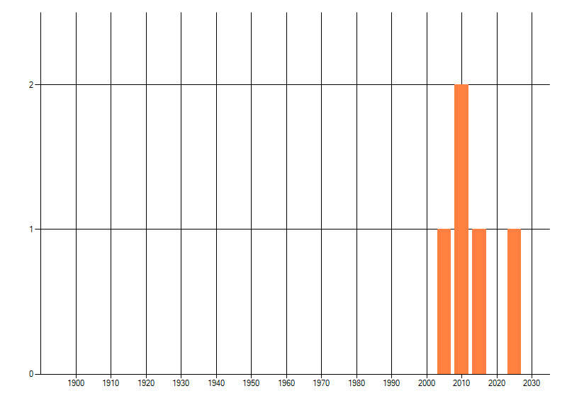 Het aantal atlasblokken (5x5 km) waarin de soort is gemeld binnen een periode van vijf jaar (vanaf 1980) of twintig jaar. Niet gecorrigeerd voor waarnemersinspanning en het aantal doorgegeven waarnemingen kan sterk variëren per periode, dus een trend in verspreiding kan hier niet direct uit worden afgelezen. Het opgegeven jaartal is het eerste jaar van de periode. Bron: gevalideerde waarnemingen uit de NDFF.
