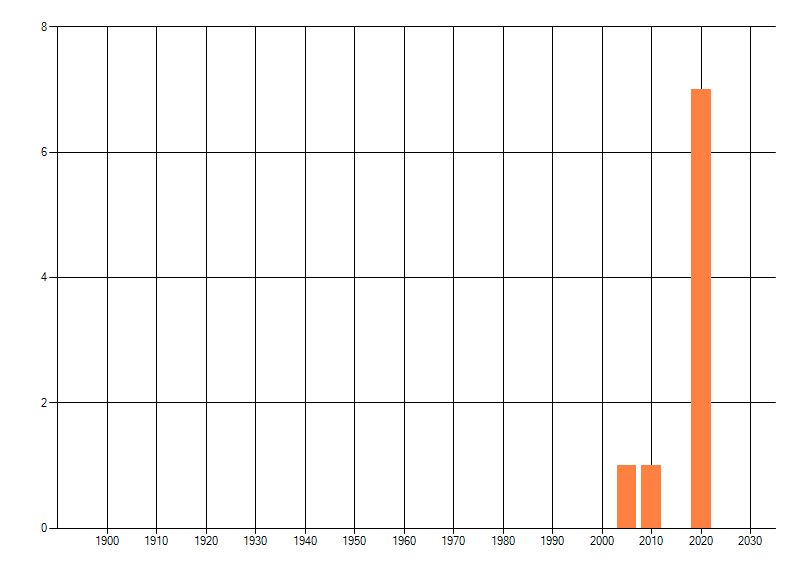 Het aantal atlasblokken (5x5 km) waarin de soort is gemeld binnen een periode van vijf jaar (vanaf 1980) of twintig jaar. Niet gecorrigeerd voor waarnemersinspanning en het aantal doorgegeven waarnemingen kan sterk variëren per periode, dus een trend in verspreiding kan hier niet direct uit worden afgelezen. Het opgegeven jaartal is het eerste jaar van de periode. Bron: gevalideerde waarnemingen uit de NDFF.