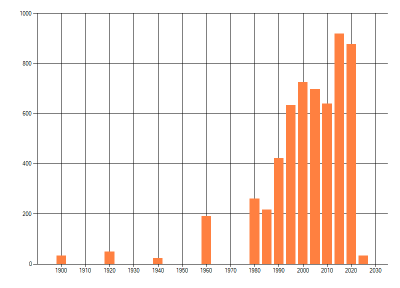 Het aantal atlasblokken (5x5 km) waarin de soort is gemeld binnen een periode van vijf jaar (vanaf 1980) of twintig jaar. Niet gecorrigeerd voor waarnemersinspanning en het aantal doorgegeven waarnemingen kan sterk variëren per periode, dus een trend in verspreiding kan hier niet direct uit worden afgelezen. Het opgegeven jaartal is het eerste jaar van de periode. Bron: gevalideerde waarnemingen uit de NDFF.