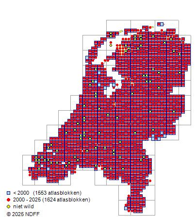 Bron: FLORON - Gemodelleerd op basis van waarnemingen uit de NDFF voor de periode 2000-2021.