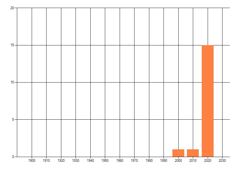 Het aantal atlasblokken (5x5 km) waarin de soort is gemeld binnen een periode van vijf jaar (vanaf 1980) of twintig jaar. Niet gecorrigeerd voor waarnemersinspanning en het aantal doorgegeven waarnemingen kan sterk variëren per periode, dus een trend in verspreiding kan hier niet direct uit worden afgelezen. Het opgegeven jaartal is het eerste jaar van de periode. Bron: gevalideerde waarnemingen uit de NDFF.