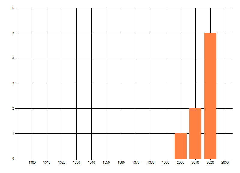 Het aantal atlasblokken (5x5 km) waarin de soort is gemeld binnen een periode van vijf jaar (vanaf 1980) of twintig jaar. Niet gecorrigeerd voor waarnemersinspanning en het aantal doorgegeven waarnemingen kan sterk variëren per periode, dus een trend in verspreiding kan hier niet direct uit worden afgelezen. Het opgegeven jaartal is het eerste jaar van de periode. Bron: gevalideerde waarnemingen uit de NDFF.