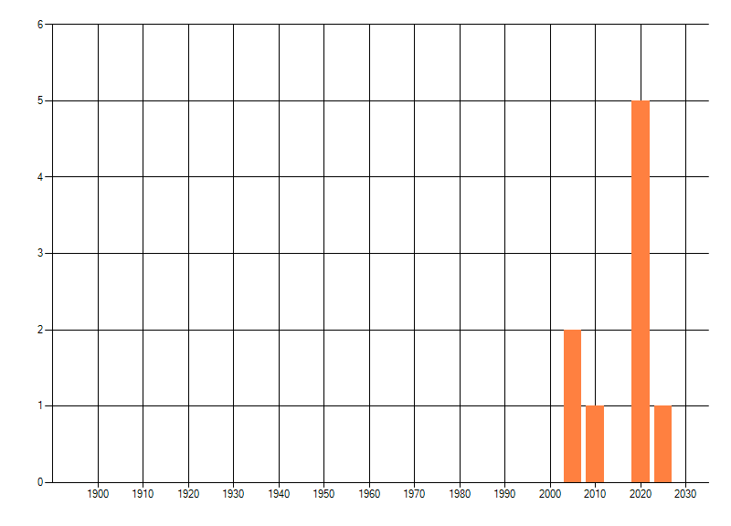 Het aantal atlasblokken (5x5 km) waarin de soort is gemeld binnen een periode van vijf jaar (vanaf 1980) of twintig jaar. Niet gecorrigeerd voor waarnemersinspanning en het aantal doorgegeven waarnemingen kan sterk variëren per periode, dus een trend in verspreiding kan hier niet direct uit worden afgelezen. Het opgegeven jaartal is het eerste jaar van de periode. Bron: gevalideerde waarnemingen uit de NDFF.