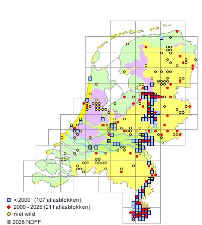 Bron: FLORON - Gemodelleerd op basis van waarnemingen uit de NDFF voor de periode 2000-2021.