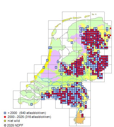 Bron: FLORON - Gemodelleerd op basis van waarnemingen uit de NDFF voor de periode 2000-2021.