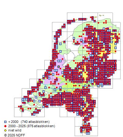 Bron: FLORON - Gemodelleerd op basis van waarnemingen uit de NDFF voor de periode 2000-2021.