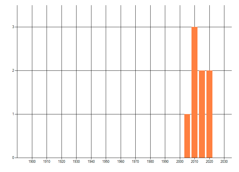 Het aantal atlasblokken (5x5 km) waarin de soort is gemeld binnen een periode van vijf jaar (vanaf 1980) of twintig jaar. Niet gecorrigeerd voor waarnemersinspanning en het aantal doorgegeven waarnemingen kan sterk variëren per periode, dus een trend in verspreiding kan hier niet direct uit worden afgelezen. Het opgegeven jaartal is het eerste jaar van de periode. Bron: gevalideerde waarnemingen uit de NDFF.