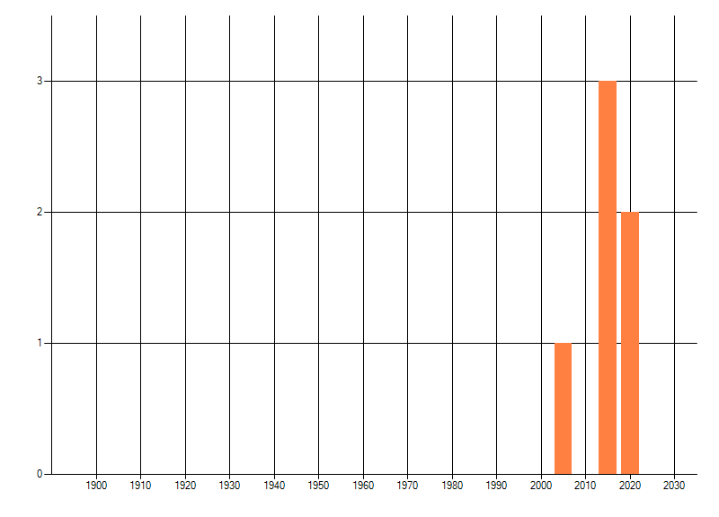 Het aantal atlasblokken (5x5 km) waarin de soort is gemeld binnen een periode van vijf jaar (vanaf 1980) of twintig jaar. Niet gecorrigeerd voor waarnemersinspanning en het aantal doorgegeven waarnemingen kan sterk variëren per periode, dus een trend in verspreiding kan hier niet direct uit worden afgelezen. Het opgegeven jaartal is het eerste jaar van de periode. Bron: gevalideerde waarnemingen uit de NDFF.