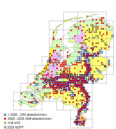 Bron: FLORON - Gemodelleerd op basis van waarnemingen uit de NDFF voor de periode 2000-2021.