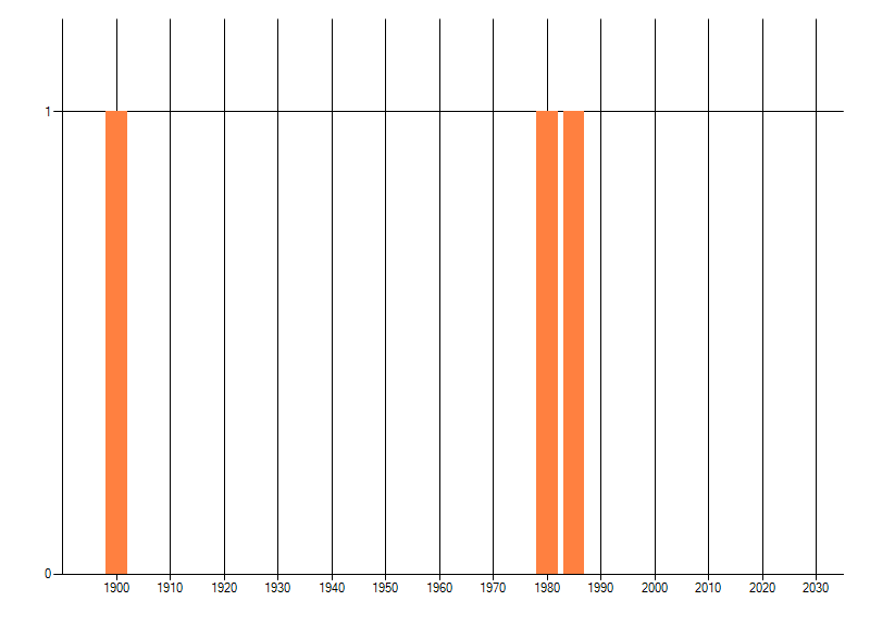 Het aantal atlasblokken (5x5 km) waarin de soort is gemeld binnen een periode van vijf jaar (vanaf 1980) of twintig jaar. Niet gecorrigeerd voor waarnemersinspanning en het aantal doorgegeven waarnemingen kan sterk variëren per periode, dus een trend in verspreiding kan hier niet direct uit worden afgelezen. Het opgegeven jaartal is het eerste jaar van de periode. Bron: gevalideerde waarnemingen uit de NDFF.