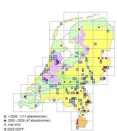 Bron: FLORON - Gemodelleerd op basis van waarnemingen uit de NDFF voor de periode 2000-2021.