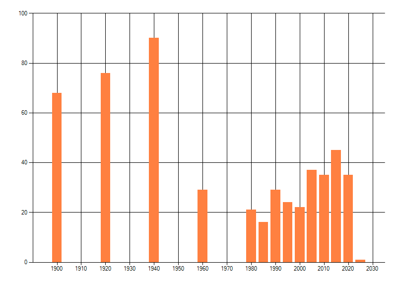 dus een trend in verspreiding kan hier niet direct uit worden afgelezen. Het opgegeven jaartal is het eerste jaar van de
