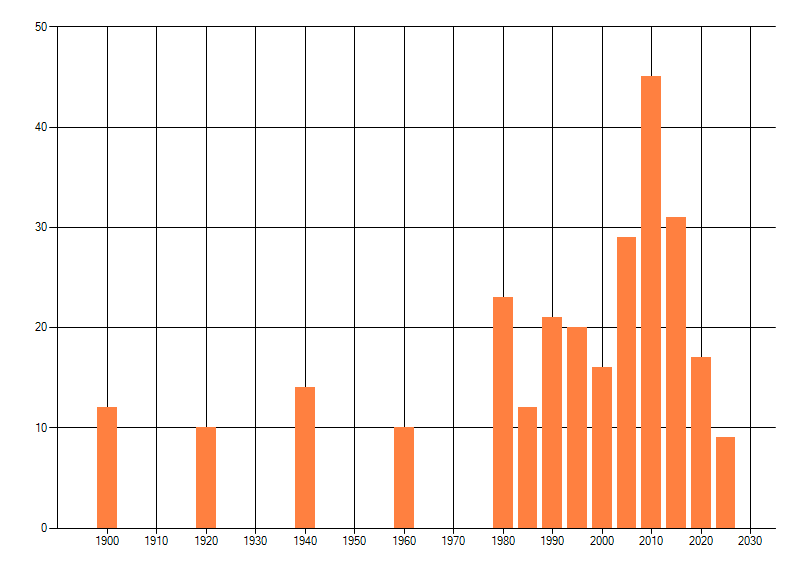 dus een trend in verspreiding kan hier niet direct uit worden afgelezen. Het opgegeven jaartal is het eerste jaar van de
