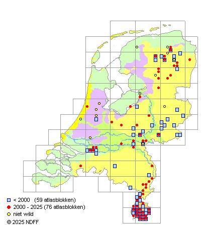 Bron: FLORON - Gemodelleerd op basis van waarnemingen uit de NDFF voor de periode 2000-2021.