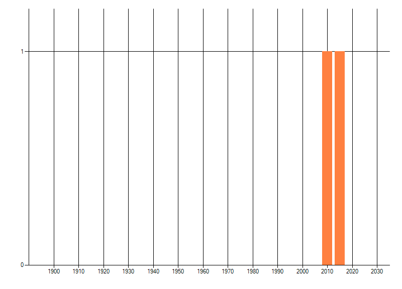 Het aantal atlasblokken (5x5 km) waarin de soort is gemeld binnen een periode van vijf jaar (vanaf 1980) of twintig jaar. Niet gecorrigeerd voor waarnemersinspanning en het aantal doorgegeven waarnemingen kan sterk variëren per periode, dus een trend in verspreiding kan hier niet direct uit worden afgelezen. Het opgegeven jaartal is het eerste jaar van de periode. Bron: gevalideerde waarnemingen uit de NDFF.