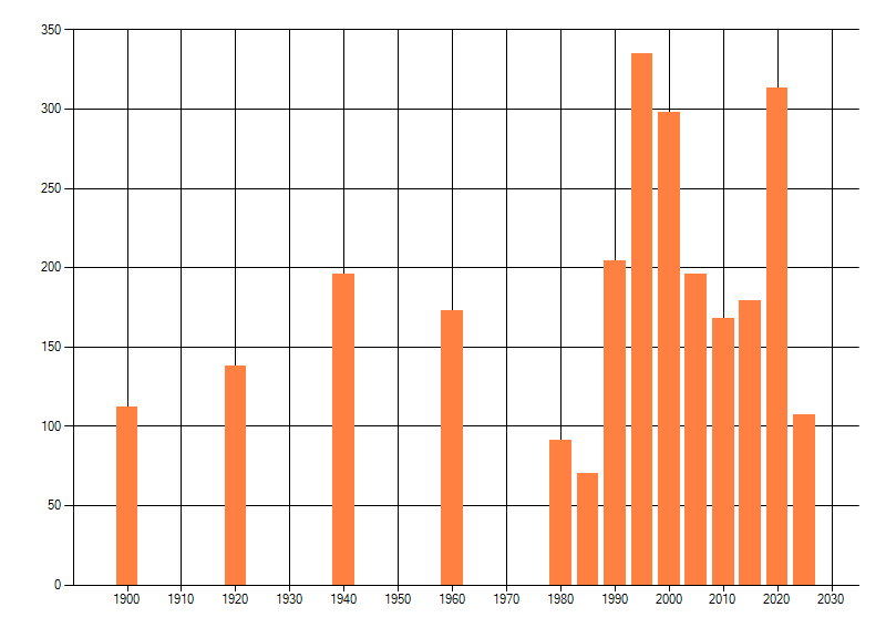 dus een trend in verspreiding kan hier niet direct uit worden afgelezen. Het opgegeven jaartal is het eerste jaar van de